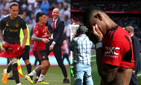 Đụng độ Man City ở Chung kết FA Cup, MU chơi hiệu quả và dẫn 2-0 trong hiệp một. Những nỗ lực trong hiệp hai chỉ giúp Man City có bàn gỡ do công của Jeremy Doku. - Ảnh: InternetHai thái cực xuất hiện tại Wembley khi Man City thua trận. Với chiến thắng này, MU cũng phục thù thành công thất bại ở Chung kết FA Cup mùa trước. Ảnh: InternetLisandro Martinez không giấu được cảm xúc và nhấc bổng HLV Erik ten Hag. Ngay sau khi trở lại từ chấn thương, tuyển thủ Argentina đã chơi ấn tượng bên cạnh Raphael Varane. Ảnh: InternetMarcus Rashford rơi nước mắt khi ăn mừng. Mùa này, tiền đạo MU nhận hàng loạt chỉ trích vì phong độ sa sút. Thậm chí, anh từng công khai đối đầu CĐV MU trên mạng xã hội. Ảnh: InternetCác trợ lý chia vui cùng HLV Erik ten Hag. Ông đang đứng trên bờ vực bị sa thải vì chuỗi thành tích nghèo nàn ở mùa giải 2023/24. Ảnh: InternetKhoảnh khắc cảm xúc của Kobbie Mainoo. Ngay ở trận Chung kết đầu tiên trong sự nghiệp, tiền vệ trẻ của MU để lại dấu ấn đậm nét bằng một bàn thắng. Ảnh: InternetNiềm hân hoan của Sir Jim Ratcliffe và tỷ phú người Anh đang hướng về Sir Alex Ferguson trên khán đài danh dự. Ảnh: InternetLời chia tay ý nghĩa của Raphael Varane. Màn đọ sức với Man City cũng là trận đấu cuối cùng anh khoác áo MU. Ảnh: InternetHLV Erik ten Hag được giải tỏa áp lực. Nhiều khả năng, ông vẫn tại vị nhờ danh hiệu thứ hai cùng MU. Ảnh: InternetDàn sao MU sẽ hướng đến mùa giải 2024/25 thành công hơn - Ảnh: InternetĐọc tin bóng đá mới nhất trên VOH.com.vn mỗi ngày.