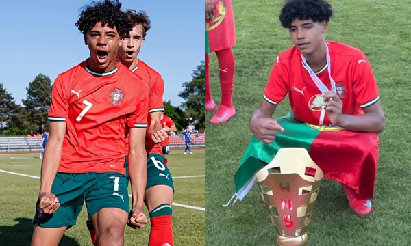 Đảm nhận vai trò tiền đạo cánh trái, quý tử nhà "CR7" toả sáng khai thông thế bế tắc cho "Brazil châu Âu" trong hiệp một bằng siêu phẩm ấn tượng. Đột phá vòng cấm nhận đường chuyền từ đồng đội, Cristiano Jr quyết đoán dứt điểm chân trái uy lực khiến thủ môn đối phương choáng váng, đưa bóng dội xà ngang tung lưới.