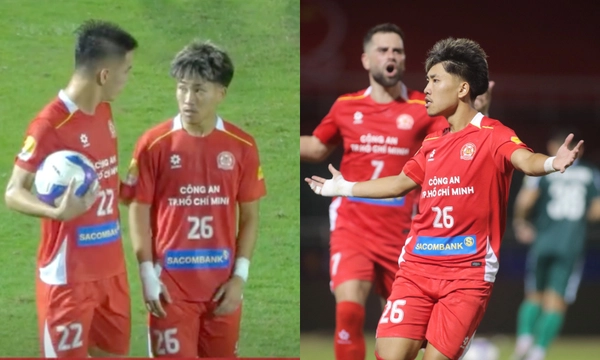 Khoa Ngo đã bình tĩnh đánh lừa thủ thành Bùi Tấn Trường ở cự ly 11 mét để ghi bàn mở tỷ số. Đây là pha lập công thứ 4 của ngòi nổ 19 tuổi qua 6 trận gần nhất trên mọi đấu trường. Càng ấn tượng hơn mỗi khi Khoa Ngo ghi bàn, Công an TP.HCM đều thắng trận.