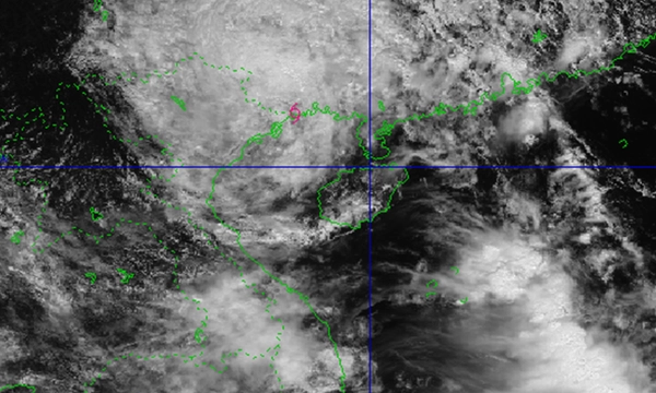 Vào lúc 12 giờ trưa nay, áp thấp nhiệt đới ở trên bờ biển khu vực Quảng Ninh - Nguồn: NCHMF