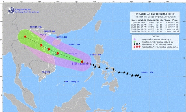 Theo Trung tâm Dự báo Khí tượng Thủy văn Quốc gia, đến 4h sáng nay (27/9), vị trí tâm bão cách đặc khu Hoàng Sa khoảng 580km về phía Đông Đông Nam. Sức gió mạnh nhất vùng gần tâm bão mạnh cấp 11-12 (103-133km/giờ), giật cấp 15. Bão di chuyển theo hướng Tây Tây Bắc với tốc độ 35-40km/h.