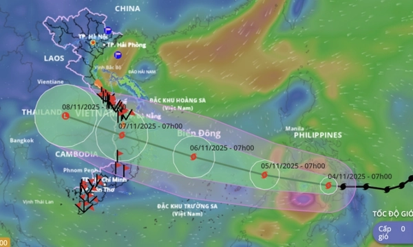 Theo Trung tâm Dự báo Khí tượng Thủy văn Quốc gia, lúc 8h sáng 4/11, tâm bão Kalmaegi đang ở trên khu vực miền Trung Philippines, sức gió mạnh nhất vùng gần tâm bão cấp 13 (134 – 149 km/h), giật cấp 16. Dự báo sáng 5/11, bão sẽ đi vào Biển Đông, trở thành cơn bão số 13 trong năm 2025. Sau khi vào Biển Đông, bão tiếp tục mạnh lên cấp 13 – 14, giật cấp 16 – 17, di chuyển theo hướng Tây Bắc, hướng về vùng biển Trung và Nam Trung Bộ.