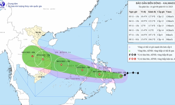 Chiều qua, cơ quan khí tượng Việt Nam đưa ra nhận định: khoảng gần sáng ngày 5/11 (thứ Tư) bão Kalmaegi đi vào Biển Đông với cường độ khoảng cấp 12, giật cấp 15.
