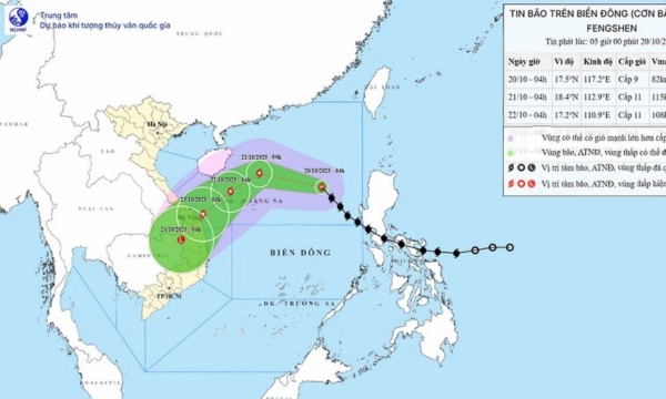 Khoảng 4 giờ ngày 20/10, vị trí tâm bão ở vào khoảng 17,5 độ Vĩ Bắc; 117,2 độ Kinh Đông, cách đặc khu Hoàng Sa khoảng 540km về phía Đông Đông Bắc. Sức gió mạnh nhất vùng gần tâm bão mạnh cấp 9 (75-88km/giờ), giật cấp 11. Di chuyển theo hướng Tây Bắc với tốc độ khoảng 25km/h.