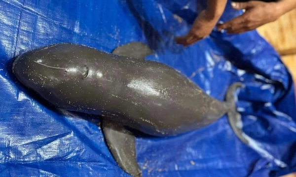 Cá voi được phát hiện vào khoảng 18 giờ, có trọng lượng hơn 30kg, dài khoảng 1 mét. Dù còn sống khi được phát hiện, nhưng cá trong tình trạng yếu, không thể phục hồi.