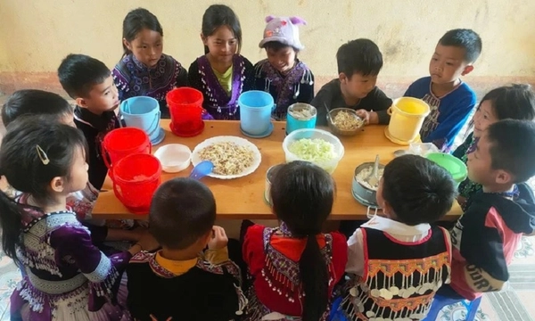 Nhờ nguồn hỗ trợ này, mỗi bữa ăn bán trú của các em được xây dựng với chi phí 7.000 – 8.000 đồng/suất, gồm thịt, đậu, rau, canh..., kết hợp phần hỗ trợ từ gia đình và địa phương nhằm giúp học sinh có bữa ăn đủ dinh dưỡng.