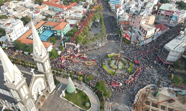 Tại nhiều giao lộ, người dân đứng chật kín hai bên đường, kéo dài gần 3 km để chờ kiệu Bà đi qua, thắp hương và cầu nguyện. Theo sau kiệu là các đoàn múa lân, rồng, hóa trang thành tiên nữ, Bồ Tát, Thần Tài… tạo không khí rộn ràng.