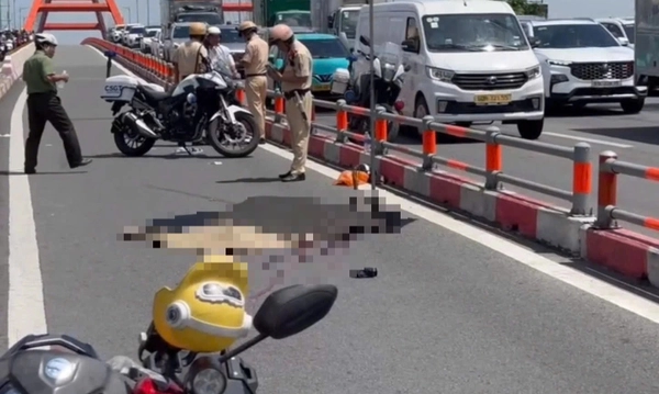 Công an nhanh chóng phong tỏa hiện trường, trích xuất camera an ninh để phục vụ điều tra. Quá trình khám nghiệm, lực lượng chức năng phát hiện một xe máy bị ngã vào dải phân cách ở khu vực chân cầu, bước đầu nhận định vụ việc có thể là tai nạn giao thông.