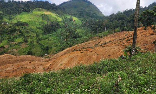 Đất đá từ sườn núi đổ ập xuống khu vực sản xuất của người dân, khiến ba người làm rẫy mất liên lạc.