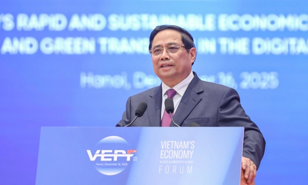Phát biểu tại Diễn đàn, Thủ tướng Chính phủ Phạm Minh Chính đánh giá Diễn đàn Kinh tế Việt Nam năm 2025, triển vọng năm 2026 với chủ đề: “Kinh tế Việt Nam phát triển nhanh, bền vững và chuyển đổi xanh trong kỷ nguyên số” là sự kiện có ý nghĩa quan trọng đánh giá tình hình, kết quả phát triển kinh tế của Việt Nam năm 2025 và định hướng, giải pháp thúc đẩy phát triển nhanh, bền vững dựa trên chiến lược “chuyển đổi kép: xanh hóa, số hóa” trong năm 2026 và những năm tiếp theo.