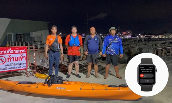 Một người đàn ông Thái Lan đã được giải cứu ngoài khơi Pattaya sau khi thuyền kayak của anh bị lật úp giữa biển và chiếc Apple Watch đã kịp thời phát cảnh báo thông qua tính năng SOS khẩn cấp.