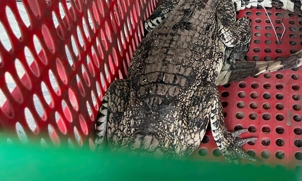Khoảng 7 giờ sáng, khi ông H. đang đi dạo trong sân, ông giật mình thấy một con cá sấu lớn nằm im lìm giữa những chậu cây. Hốt hoảng, ông gọi hàng xóm đến giúp đỡ. Sau đó, mọi người nhanh chóng vây bắt con cá sấu, cột chặt mõm để đảm bảo an toàn và nhốt vào lồng.