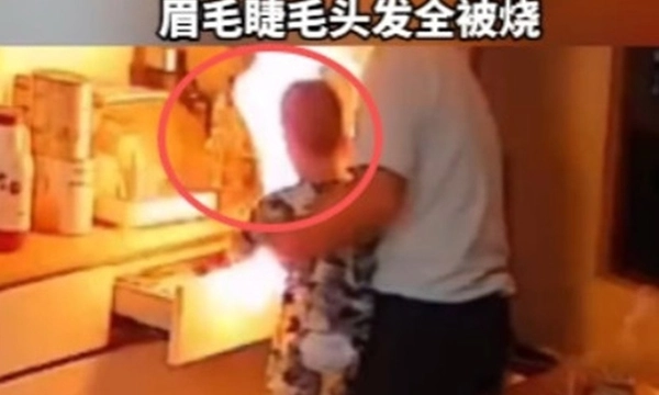 Ngày 9/10, mạng xã hội Trung Quốc lan truyền đoạn video ghi lại cảnh một cụ ông ở tỉnh Hà Nam vô tình khiến cháu nội bị cháy tóc và bỏng da mặt khi dùng bật lửa làm “đồ chơi”.