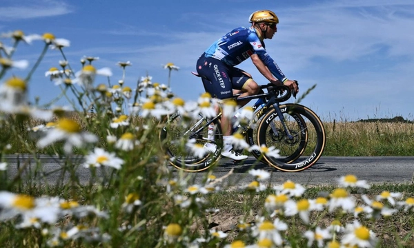 Tay đua xe đạp người Bỉ Remco Evenepoel tập luyện gần Lille, trước khi bắt đầu giải đua xe đạp Tour de France lần thứ 112 - Ảnh: Getty