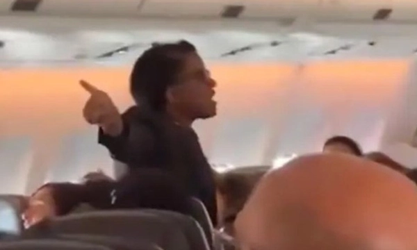 "Các người phải cư xử đúng mực hoặc chúng tôi sẽ xuống máy bay!" - thành viên phi hành đoàn hét lên trong đoạn video hiện đang lan truyền do một hành khách khác ghi lại.