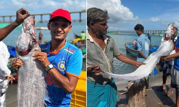 Cá mái chèo quý hiếm, có biệt danh là 'cá tận thế', được ngư dân đánh bắt gần Pamban. Đây là loài cá sống ở vùng biển sâu có liên quan đến điềm báo thảm họa.