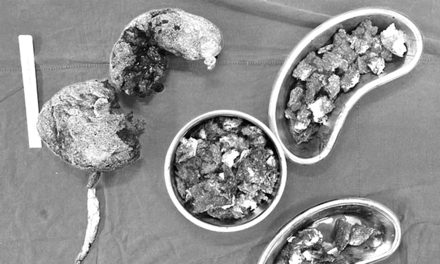 Trong quá trình phẫu thuật, ekip mổ phát hiện bệnh nhân bị thủng lỗ lớn ở dạ dày, bờ xơ chai đường kính lỗ thủng 3cm, nghĩ do viêm loét do lạm dụng thuốc giảm đau NSAIDs. Các bác sĩ đã tiến hành khâu lỗ thủng dạ dày, mở dạ dày giải áp, mở hỗng tràng nuôi ăn.