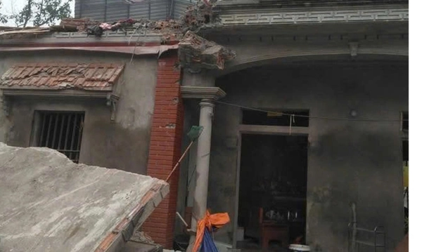 Tại hiện trường, tầng 2 của ngôi nhà gần như bị phá hủy hoàn toàn, tường và mái ngổn ngang. Một số căn nhà lân cận xuất hiện tình trạng rạn nứt tường và vỡ kính.