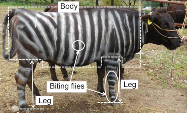 Các nhà nghiên cứu đã quan sát thấy số lượng ruồi bu và cắn bò giảm tới 50% ở những con vật được vẽ sọc trắng so với những con được vẽ sọc đen hoặc không được vẽ gì cả.