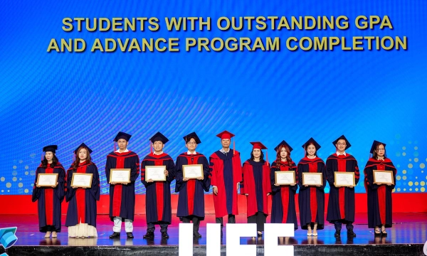 Năm nay, UEF trao bằng cho 597 cử nhân, 153 thạc sĩ và 2 tiến sĩ. Bên cạnh câu chuyện của cặp đôi, nhiều học viên khác cũng đạt thành tích ấn tượng, như thủ khoa ngành Quản trị kinh doanh với GPA 3.73 hay thủ khoa ngành Ngôn ngữ Anh đạt 3.75.