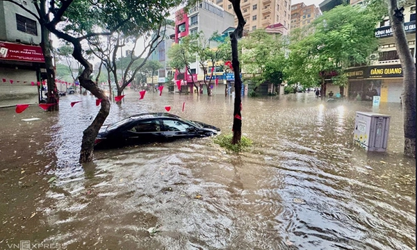 Tại phố Quan Nhân nằm gần sông Tô Lịch nhưng nước chưa kịp rút, một ôtô đang di chuyển bất ngờ chết máy, đứng im giữa dòng nước. Nếu mua bảo hiểm thân vỏ xe, chủ xe cần ngay lập tức chụp ảnh, quay video hiện trường, liên hệ nhân viên của hãng bảo hiểm để tiến hành các thủ tục bồi thường.
