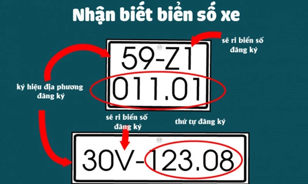 Theo đó, biển số xe máy có chữ số là ký hiệu địa phương, series đăng ký gồm hai chữ cái. Kế đến là số thứ tự xe đăng ký gồm 5 số, từ 000.01 đến 999.99.