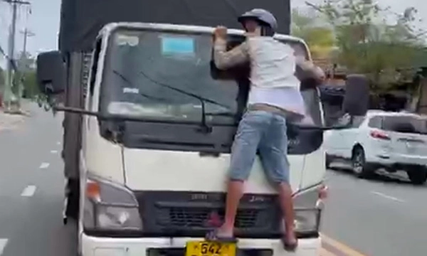 Ngày 29/11, xuất hiện một đoạn clip ghi lại cảnh người đàn ông đu bám trước đầu xe tải đang chạy vun vút trên đường được lan truyền trên mạng xã hội, thu hút sự chú ý của dư luận.