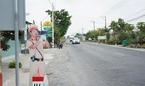 Mô hình cảnh sát giao thông (CSGT) hình nộm “bắn tốc độ” tại Quốc lộ N2, đoạn qua xã Thạnh Hóa (Tây Ninh), đang phát huy hiệu quả rõ rệt trong việc nhắc nhở người tham gia giao thông.