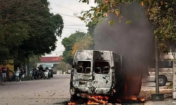 Chiều ngày 28/2, một xe ô tô 16 chỗ đang lưu thông trên đường Lương Văn Nắm, phường Bắc Giang, tỉnh Bắc Ninh thì bất ngờ bốc cháy. Ngọn lửa xuất hiện khi xe đang di chuyển trên đường và nhanh chóng lan rộng.