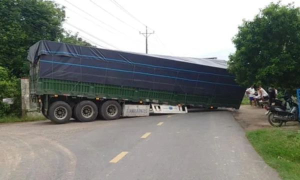 Khi đến ngã ba từ khu dân cư ấp Trà Sim ra đường 796, tài xế cho xe ôm cua thì bất ngờ rơ-moóc bị bật ra khỏi xe rơi xuống đường.