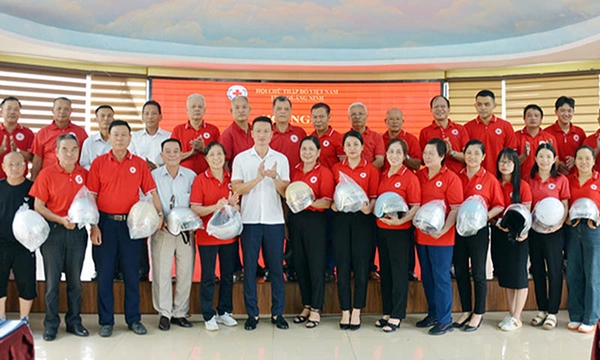 Tại lớp tập huấn, Hội Chữ thập đỏ tỉnh đã cấp phát cho các tình nguyện viên trang thiết bị sơ cấp cứu ban đầu và mũ bảo hiểm.