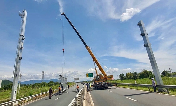 Từ sáng 18/9, các đơn vị thi công đã triển khai lắp đặt giá long môn trên tuyến cao tốc, đoạn từ nút giao Phan Thiết (Km234) đến nút giao quốc lộ 28 (Km208). Việc lắp đặt phải dùng xe cẩu để nâng các thanh giá đỡ kích thước lớn nên phải tạm dừng khai thác đoạn tuyến để đảm bảo an toàn.