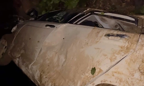 Vụ tai nạn làm chiếc ô tô móp méo, biến dạng hoàn toàn. Người dân địa phương đã kịp thời phá cửa đưa người trong xe lên đường an toàn, may mắn các người trong xe chỉ bị xây xát.
