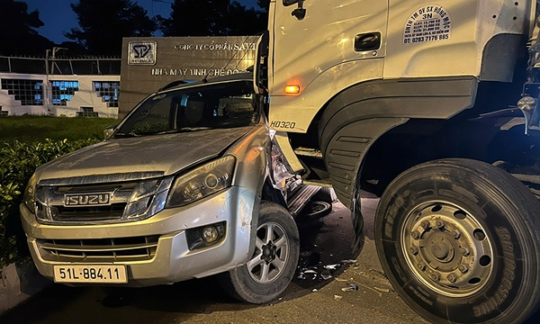 Khi đến trước cổng công ty gỗ Satimex, phường Tam Bình, TPHCM (trước đây là phường Bình Chiểu, TP Thủ Đức), phương tiện bất ngờ mất kiểm soát, chạy loạng choạng lao vào phía trước cổng của công ty gỗ này.