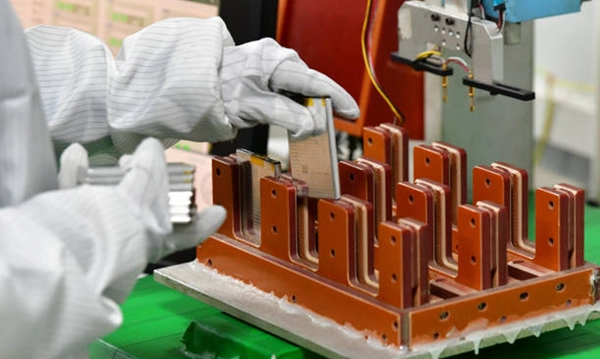 Các nhân viên đang sản xuất các sản phẩm pin lithium trên dây chuyền sản xuất tại một xưởng ở Nam Thông, tỉnh Giang Tô, Trung Quốc. - Ảnh: Getty Images.
