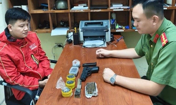 Một người đàn ông ở Hà Nội bị bắt giữ sau khi công an phát hiện anh ta rao bán đạn và súng trên Facebook, cất giữ nhiều vũ khí quân dụng trong nhà.