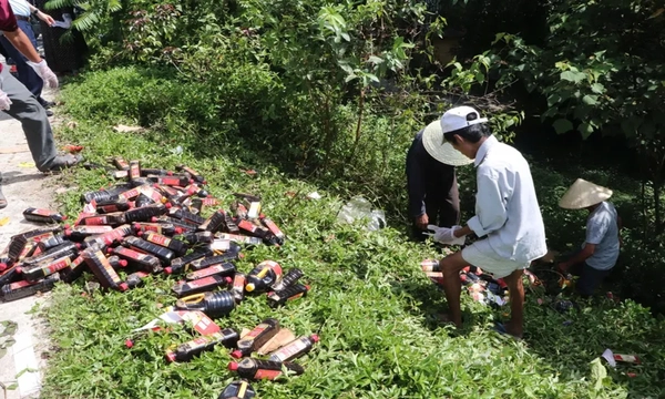 Đến 19/6, Phòng Cảnh sát kinh tế Công an tỉnh Quảng Nam phối hợp Công an xã Tam Thái và Chi cục Quản lý thị trường tỉnh tiến hành thu gom, lập biên bản hiện trường và mở rộng điều tra. Theo ghi nhận, số lượng chai lọ lên đến hàng ngàn, với dung tích đa dạng từ 1 lít đến 5 lít, nhiều sản phẩm đã bị bể vỡ, rò rỉ ra môi trường.