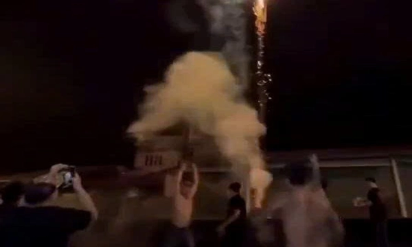Đến khoảng 22 giờ cùng ngày, khi tiệc diễn ra sôi động, Trần Anh Dùng lấy 5 hộp pháo hoa (mỗi hộp 49 ống) đặt trên dải phân cách Quốc lộ 1 và châm lửa đốt. Pháo sáng bùng nổ khiến hàng chục người lao ra đường quốc lộ hò hét, nhảy múa, quay phim, chụp ảnh. Một số đối tượng còn tự ý chặn xe, khiến phương tiện không thể lưu thông, gây ách tắc và mất an toàn giao thông.