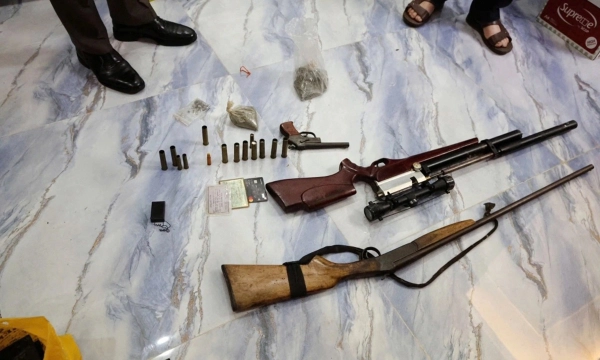 Tại các điểm khám xét, công an thu giữ nhiều tài liệu, sổ sách, giấy tờ liên quan đến hoạt động kinh doanh, nhà đất, cùng một số vũ khí như súng, đạn và các vật chứng khác.