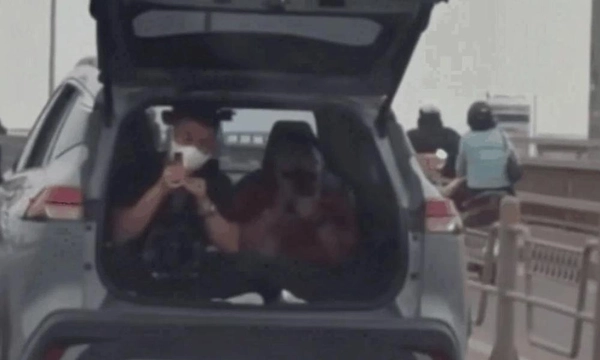 CSGT Hà Nội đã lập biên bản xử phạt nam tài xế có hành vi mở cốp ô tô, chở người trong khoang hành lý khi phương tiện đi trên đường.