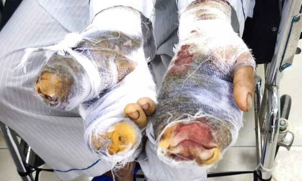 Bác sĩ chuyên khoa 1 Nguyễn Anh Tuấn, Khoa Ngoại chấn thương chỉnh hình và thần kinh cột sống cho biết, bệnh nhân nhập viện với nhiều vết thương sâu ở cả hai bàn tay, trong đó bàn tay phải bị rách vùng gốc ngón cái, bàn tay trái có nhiều vết thương sâu, làm tổn thương gân và hạn chế vận động các ngón tay.