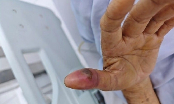 Bệnh nhân cho biết buổi sáng, ông vào phòng vệ sinh đánh răng. Khi đưa tay lấy bàn chải thì đột nhiên ông thấy đau ngón tay cái, nhìn lại thì phát hiện 1 con rắn màu xanh dài hơn 0,5 m đang ngóc đầu lên.
