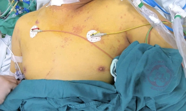 Ths.BS Phan Văn Mạnh, Khoa Cấp cứu cho biết, bệnh nhân nhập viện trong tình trạng vàng mắt vàng da, nôn máu – thiếu máu nặng, sốc, toan chuyển hóa và suy đa tạng (suy thận, suy gan, suy tim), rối loạn đông máu.