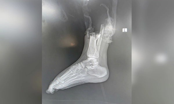 Sau cú va chạm mạnh giữa mô tô phân khối lớn và xe máy, nữ sinh Đ.P. (19 tuổi, quê Bắc Ninh) - người điều khiển xe máy bị đứt lìa ở vị trí phức tạp - 1/3 dưới cẳng chân phải, kèm dập nát phần mềm.