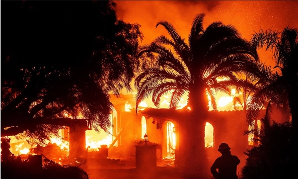 Lửa thiêu rụi một ngôi nhà ở Camarillo, California vào tháng 11/2024. Cháy rừng đã giải phóng hàng tỷ tấn carbon dioxide vào khí quyển trong năm 2024 - Ảnh: AP