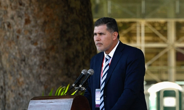 Bộ trưởng Ngoại thương và Đầu tư nước ngoài Cuba Oscar Pérez-Oliva Fraga phát biểu tại lễ khai mạc Hội chợ Quốc tế Havana lần thứ 41. - Ảnh: Reuters.