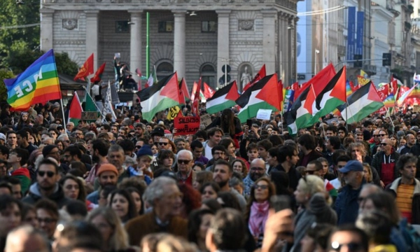 Barcelona (Tây Ban Nha): nơi đoàn tàu khởi hành, khoảng 15.000 người đã xuống đường, hô vang khẩu hiệu: “Gaza, bạn không đơn độc”, “Tẩy chay Israel”, “Tự do cho Palestine”.