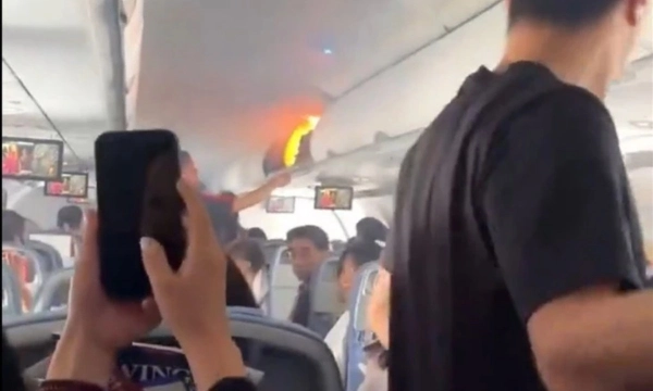 Ảnh và video do hành khách chia sẻ cho thấy ngọn lửa bùng lên kèm tiếng “bụp”, khói đen nhanh chóng tràn vào khoang; một số hành khách hỗ trợ tiếp viên dập lửa, nhiều người hoảng hốt la hét.