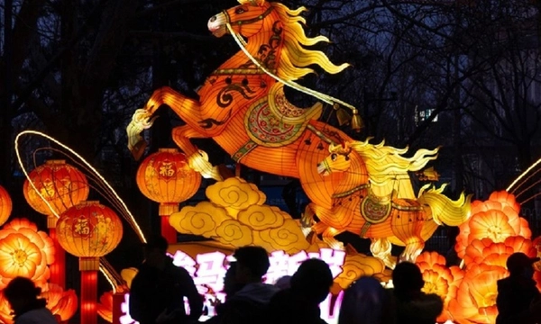 Ở Nam Kinh, Lễ hội Đèn lồng Tần Hoài có sự xuất hiện của diễn viên hóa thân Thần Tài. Du khách tập trung trước mô hình ngựa bay khổng lồ tại Lão Môn Đông. Năm Ngọ được xem là biểu trưng cho tinh thần lạc quan và những cơ hội mới.