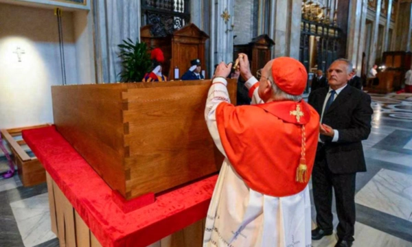Buổi lễ diễn ra tại Vương cung Thánh đường Đức Bà Cả ở Rome, do Hồng y Camerlengo Kevin Farrell chủ trì. Tuyên bố từ Vatican cho biết, nghi thức được tổ chức theo quy định dành cho an táng các vị giáo hoàng, với sự tham dự của các hồng y cấp cao và những thành viên thân tín trong gia đình Giáo hoàng Francis.
